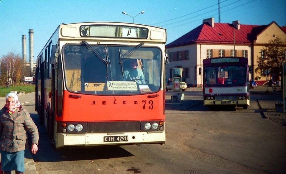 Decyzją Wojewódzka Rada Narodowa w Kielcach z dniem 1 stycznia 1956 roku uruchomiono pierwsze regularne linie autobusowe. Początkowo komunikacja miejska była prowadzona przez Miejskie Przedsiębiorstwo Wodociągów i Kanalizacji, a następnie przez Miejskie Przedsiębiorstwo Gospodarki Komunalnej. Do dyspozycji mieszkańców oddano wówczas 5 autobusów, które obsługiwały 3 linie regularne. Pierwsza baza mieściła się przy ulicy Radomskiej, w tak zwanej „Łaźni”. Następnie została przeniesiona na ówczesną ulicę Krywki, dzisiaj Rotmistrza Witolda Pileckiego, obok obecnej stacji paliwowej.